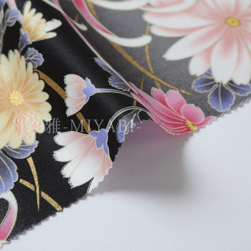 様々な菊の花が印象的かつ可愛らしくデザインされています。40サテンの生地がより上品で華やかで、大きな菊の花を花火のように見せてくれます。