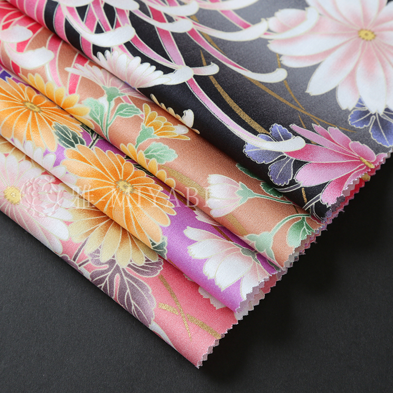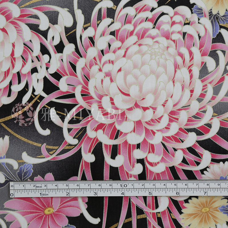 様々な菊の花が印象的かつ可愛らしくデザインされています。40サテンの生地がより上品で華やかで、大きな菊の花を花火のように見せてくれます。
