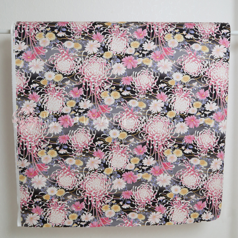 様々な菊の花が印象的かつ可愛らしくデザインされています。40サテンの生地がより上品で華やかで、大きな菊の花を花火のように見せてくれます。